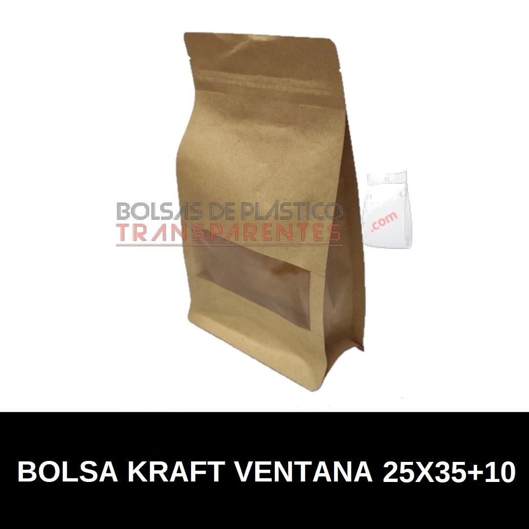 Bolsas de papel Kraft Standup Autocierre y Ventana 25×35+10