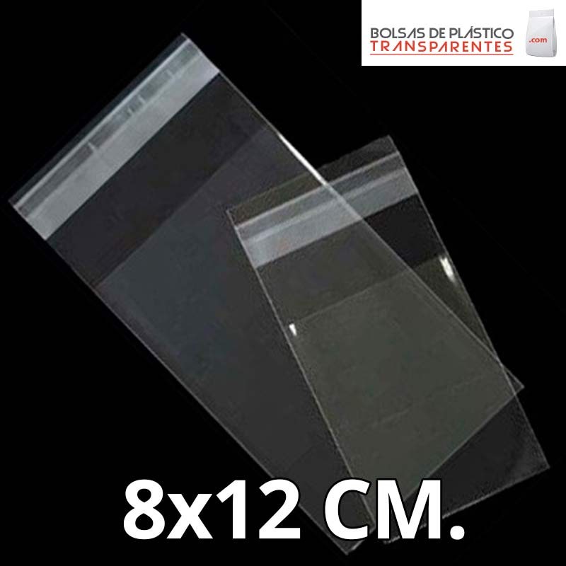 Bolsas de Plastico Transparentes Polipropileno Solapa adhesiva 8×12 cm.